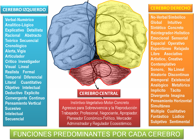 En el siguiente gráfico, encontrará las funciones por cada cerebro.